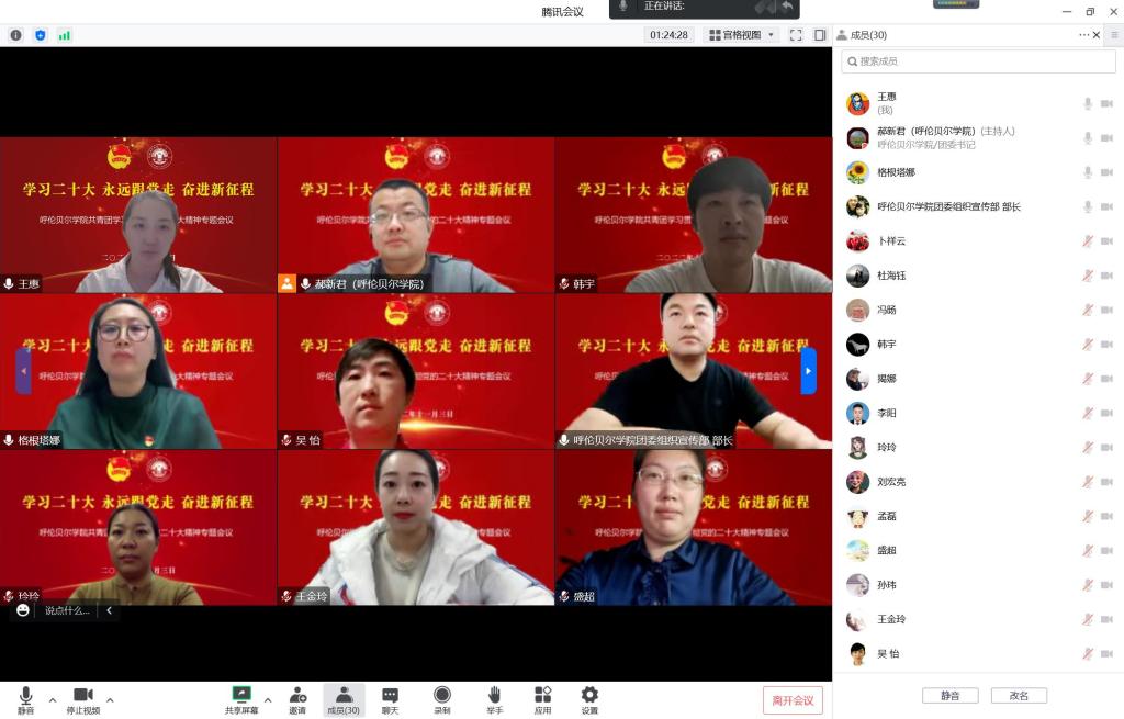 11月3日下午,校团委组织召开线上“呼伦贝尔学院共青团学习贯彻党的二十大精神专题会议”,会议由团委书记郝新君主持,全体教师团干部参加此次会议。