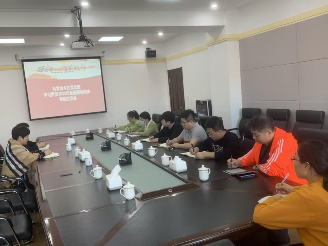 副处长王国华从深入学习贯彻十四届全国人大一次会议精神方面作了全面而深入的传达,重点传达了大会概况、习近平总书记在大会期间的重要讲话精神、政府工作报告、全国人大常委会工作报告等内容。她要求,科学技术处全体教职工要认真学习领会习近平总书记重要讲话精神,认真学习贯彻大会通过的各项决议决定,把思想和行动统一到大会对当前形势的分析判断上来,统一到大会对当前及今后一个阶段科研管理工作的部署要求上来,以忠诚之心、感恩之心沿着总书记指引的方向奋勇前进,奋力推进学校科研事业高质量发展,为推进永利yl23411集团官网转型升级作出新的更大贡献。