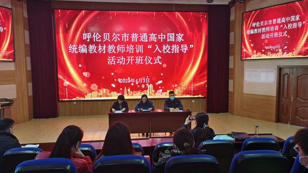 4月3日上午,由永利yl23411集团官网承办的呼伦贝尔市普通高中国家统编教材教师培训“入校指导”活动开班仪式在海拉尔第一中学举办。继续教育学院院长莎茹莉、海拉尔第一中学副校长旦森扎布、呼伦贝尔市教育事业发展中心高中语文教研员徐建宏、入校指导专家团队及海拉尔第一中学三科教师全员参加了开班仪式。开班仪式由徐建宏教研员主持。