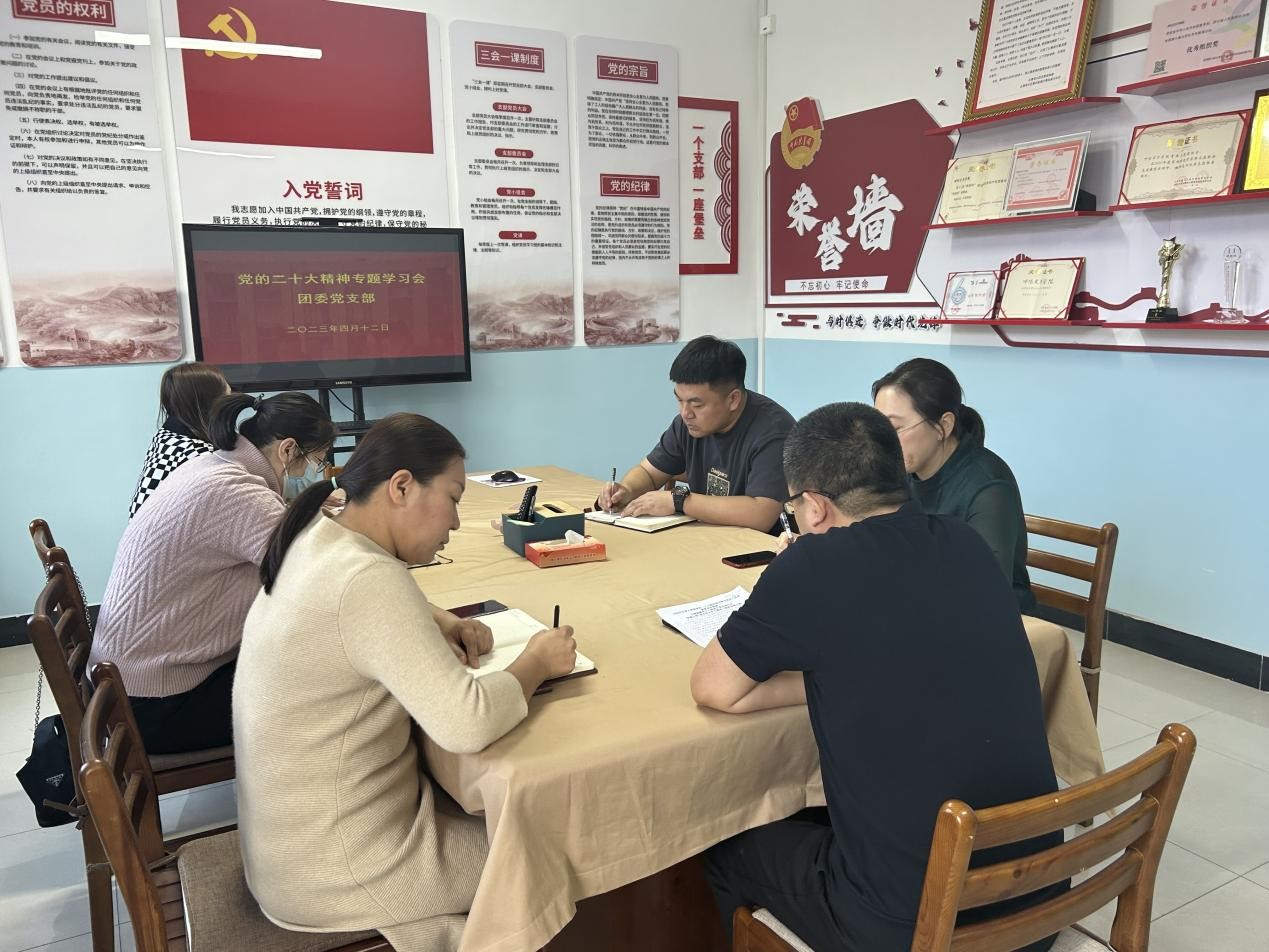 为深入学习贯彻落实党的二十大精神,4月12日下午,团委党支部召开党的二十大精神专题学习会,团委书记郝新君主持会议,全体教职工参加。