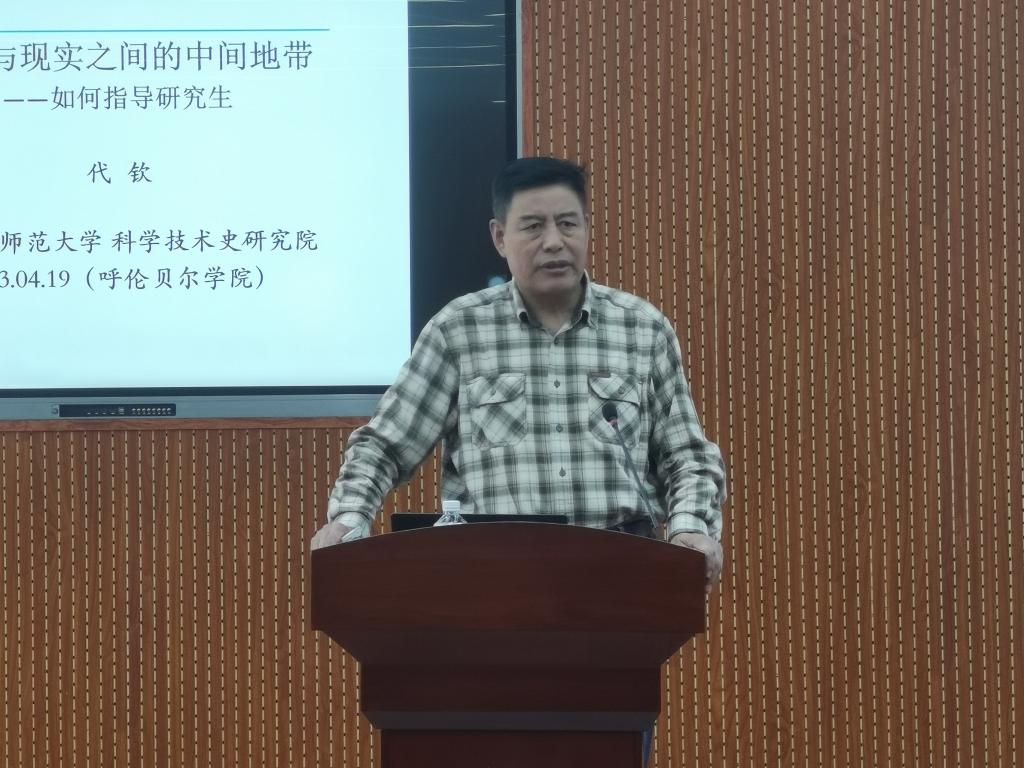 4月20日下午,在崇文楼A501会议室,永利yl23411集团官网邀请内蒙古师范大学科学技术史研究院代钦教授开展了题为《理想与现实之间的中间地带——如何指导研究生》的专题讲座培训。此次讲座是永利yl23411集团官网2023年度硕士研究生导师岗前培训系列讲座之一。讲座由研究生处处长姜明红主持,教育硕士、旅游管理硕士研究生指导教师、校外实践导师及研究生处全体教职工参加了培训。