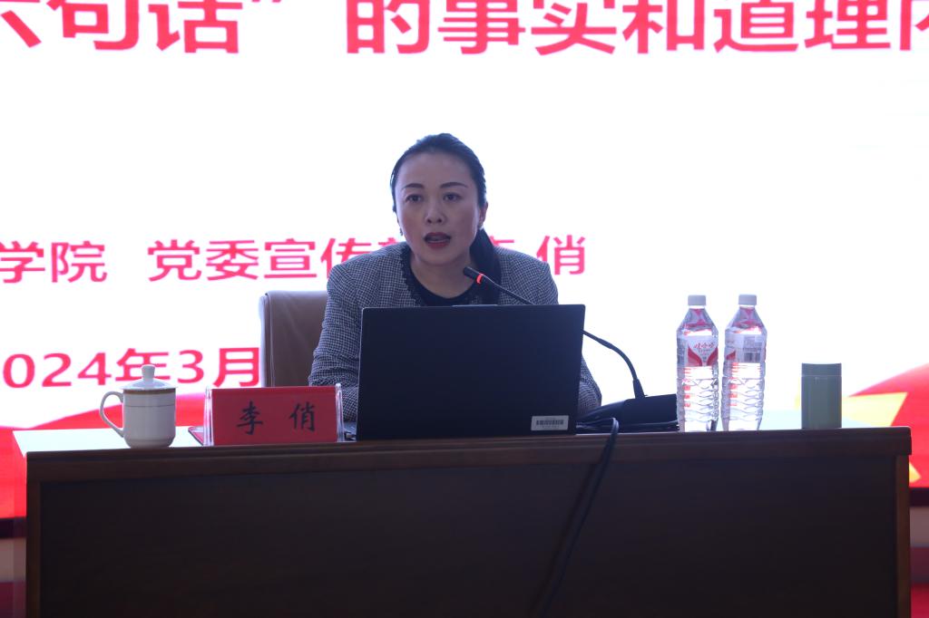 讲座中,李俏对“六句话”的事实和道理逐句进行了详细的讲解,用生动的案例向学生们讲述内蒙古自治区的发展历程及在党中央关怀和支持下内蒙古地区取得的发展成就等内容,从“克服困难捐粮畜”到“三千孤儿入内蒙”,从“齐心协力建包钢”到“最好牧场为航天”,深入剖析了“六句话”的核心要义和蕴含的哲理,让学生们对铸牢中华民族共同体意识的重要意义有了更深层次的理解,引导学生们深刻领悟和感受习近平总书记对内蒙古各族群众的深切关心和对内蒙古发展的殷殷期望,激发学生们坚定不移听党话、矢志不渝跟党走的信心和决心。