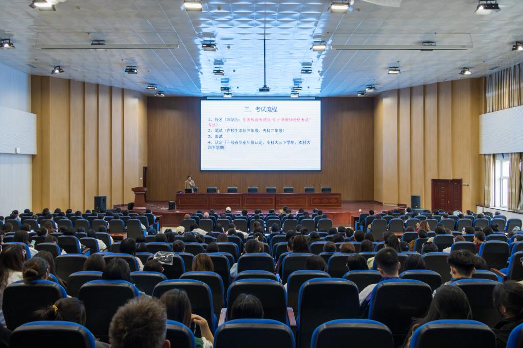 为帮助学生更好地了解教师招聘考试相关信息,4月17日,招生就业处在图书馆四楼报告厅举办教师招聘考试最新考情分析讲座。本次讲座由教育学院教师张微主讲,300余名在校生参加了此次讲座。