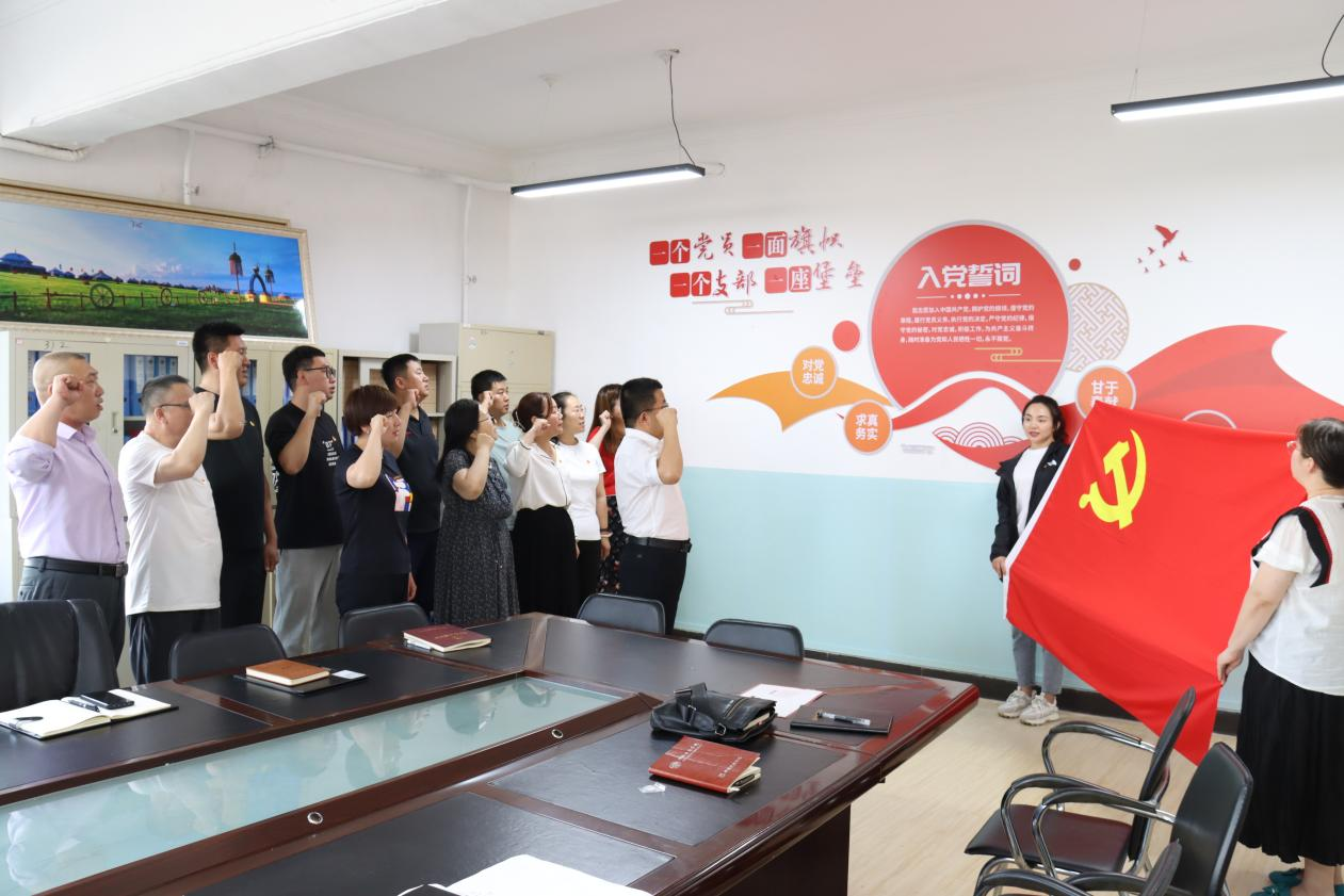 在活动的最后,全体党员共同重温入党誓词并庄严宣誓。在鲜艳的党旗下,党员们肃立并紧握右拳,铿锵有力地宣誓,表达了他们对党的忠诚和为共产主义奋斗终身的决心。此次“七一铭初心誓词砺前行”主题党日不仅让党员们回顾了党的光辉历程,更加坚定了他们的理想信念,也增强了党组织的凝聚力和战斗力,推动党建工作再上新台阶。