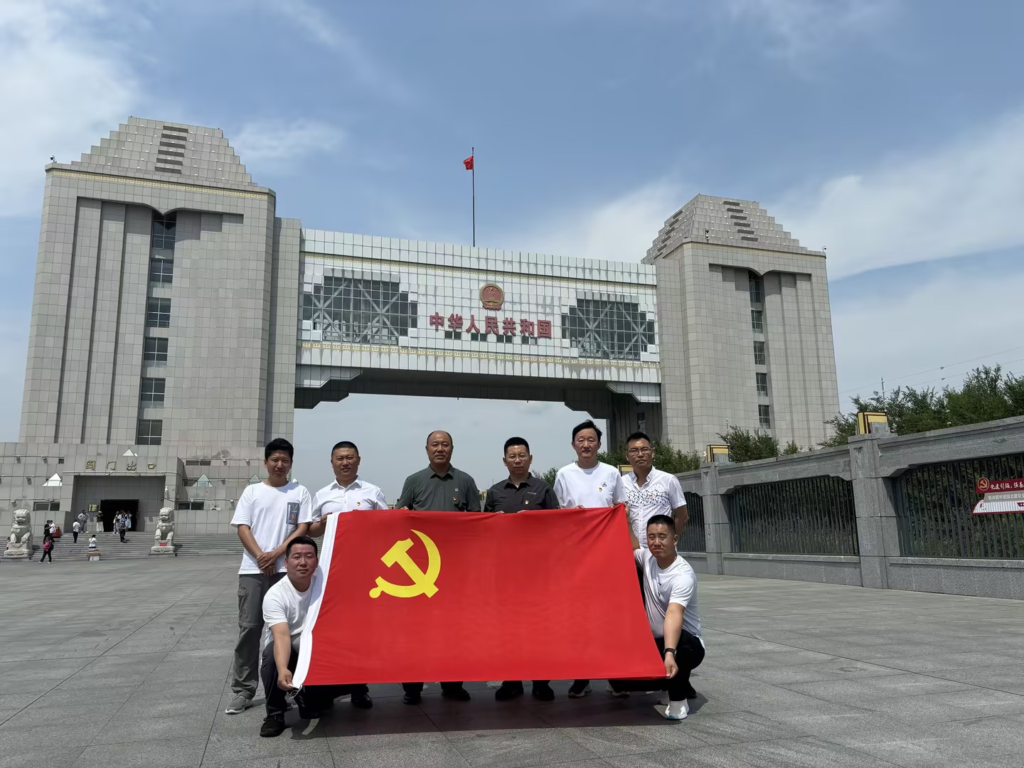 随后,全体人员驻足41号界碑处,深入理解了守卫好祖国北大门的意义;穿越秘密交通线,参观中共六大展馆,深刻领悟革命的艰辛,胜利的珍贵;大家在国门前进行合影留念,品读五代国门的变迁,见证了国家由衰弱走向强盛的发展历程。