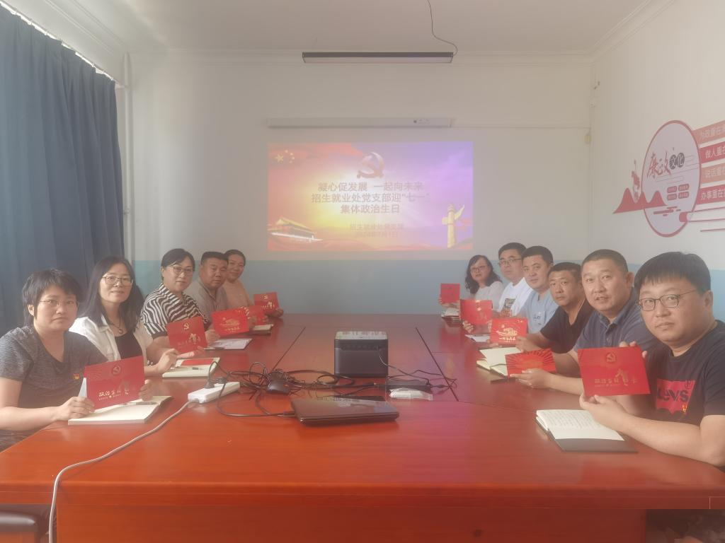 为庆祝中国共产党成立103周年,扎实推进基层党建工作,激发党员活力,凝心聚力,共促发展,招生就业处党支部组织全体党员于7月1日上午在外院楼323会议室开展“凝心促发展,一起向未来”主题党日。
