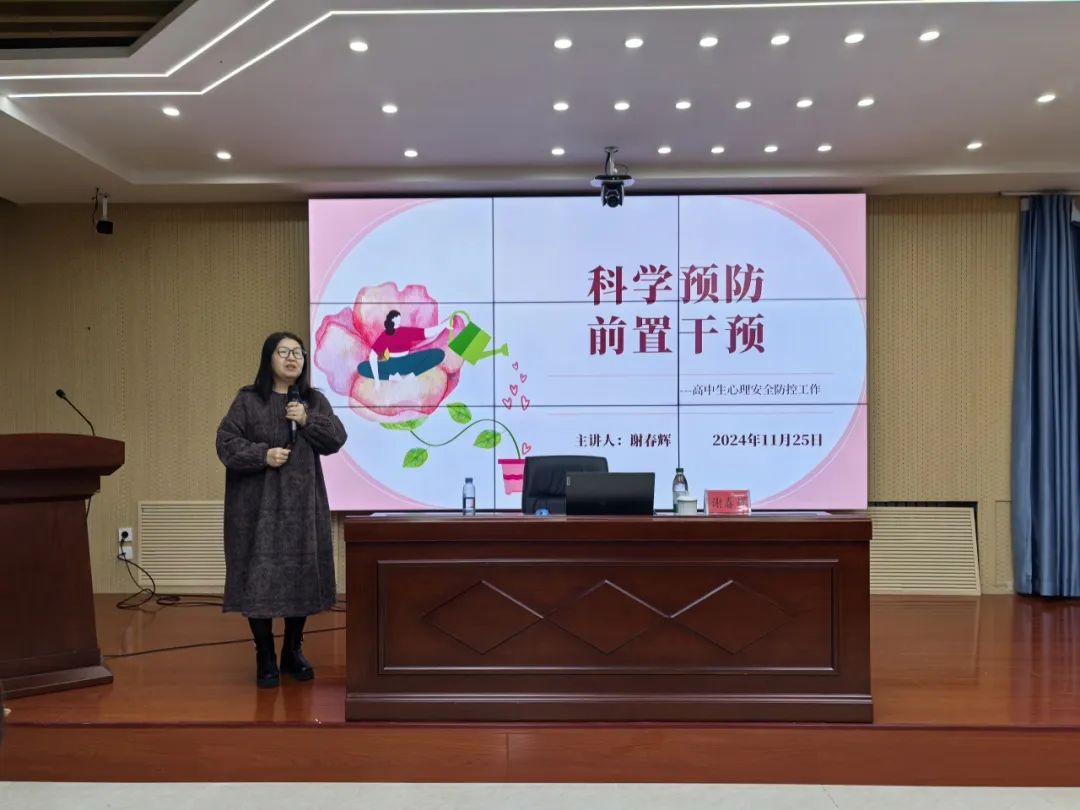 为加强永利yl23411集团官网心理健康教育示范中心面向中小学对口支援工作,推动呼伦贝尔地区大中小一体化机制建设落地生根,提升高中班主任在学生心理危机干预中的应对能力,做到早预防、早发现、早干预,为学生提供更精准有效的心理健康服务,11月25日,学生工作处(党委学生工作部、武装部)副处长谢春辉深入海拉尔第一中学开展《科学预防 前置干预——高中生心理安全防控工作》专题讲座。海拉尔第一中学党委书记宏伟,副校长崔鹏清及全体班主任、实习班主任、心理教师参加培训。