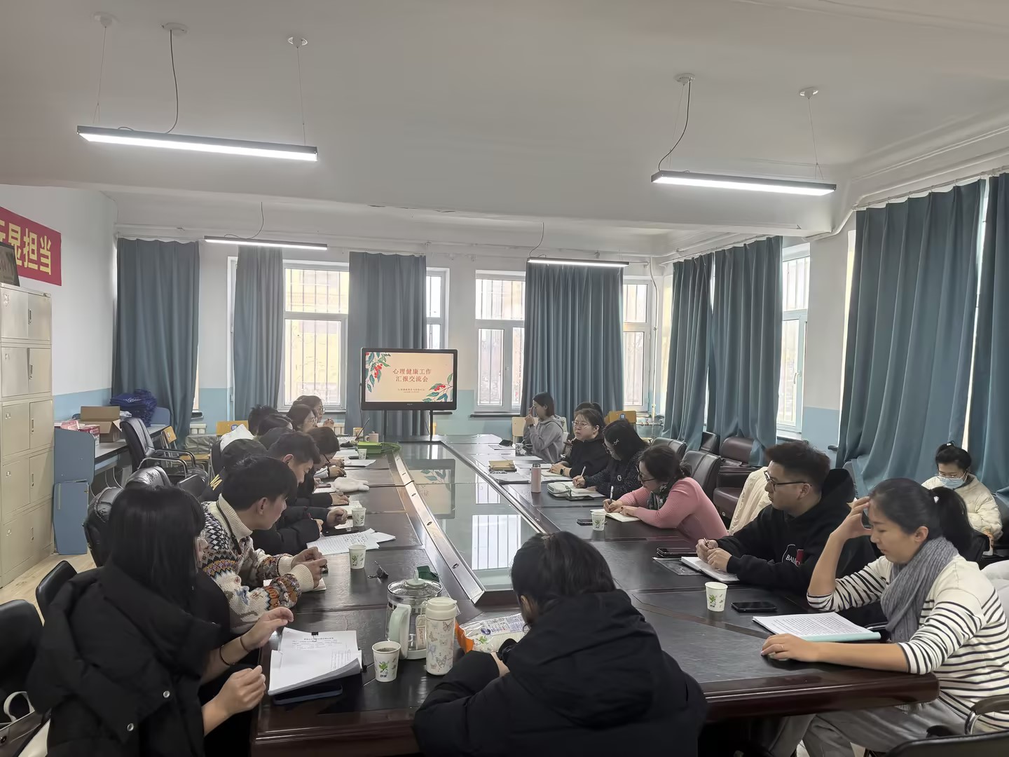 为进一步加强永利yl23411集团官网学生心理健康教育与服务工作,深入了解并掌握各学院重点学生的心理状态,分析各宿舍学生特点,探讨如何基于学生特性有效推进人际关系构建及生命教育工作,12月3日上午,学生工作处(党委学生工作部、武装部)心理健康教育与咨询中心在外院楼303室组织召开了心理健康工作汇报交流会。会议由心理中心副主任邢丽娜主持。学生工作处(党委学生工作部、武装部)副处长谢春辉、心理中心专职心理教师、外国语学院、体育学院(冰雪运动学院)、马克思主义学院、教育学院等团学办主任及全体专兼职辅导员参加了此次会议。