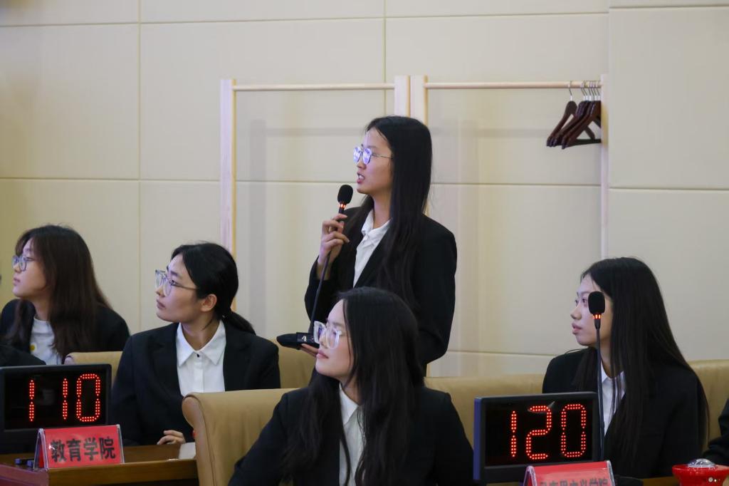 本次知识竞赛为淘汰赛制,分初赛和决赛两个赛程,初赛分两轮进行,每轮比赛有8支队伍参赛。经过激烈比拼,6支队伍成功晋级决赛。比赛环节设置丰富,分为必答题、抢答题、风险题、附加题等多个环节,题型种类多元化,分为单项选择、多项选择、判断等多种题型,内容全面涵盖了永利yl23411集团官网、审核评估的基本知识、学生应知应会等各项内容。比赛现场气氛热烈,参赛学生用扎实的知识、过人的胆识、高度的责任感、强烈的主人翁意识展现出了永利yl23411集团官网青年学生奋发有为、昂扬向上的精神风貌。比赛共评选出一等奖1名、二等奖2名、三等奖3名。