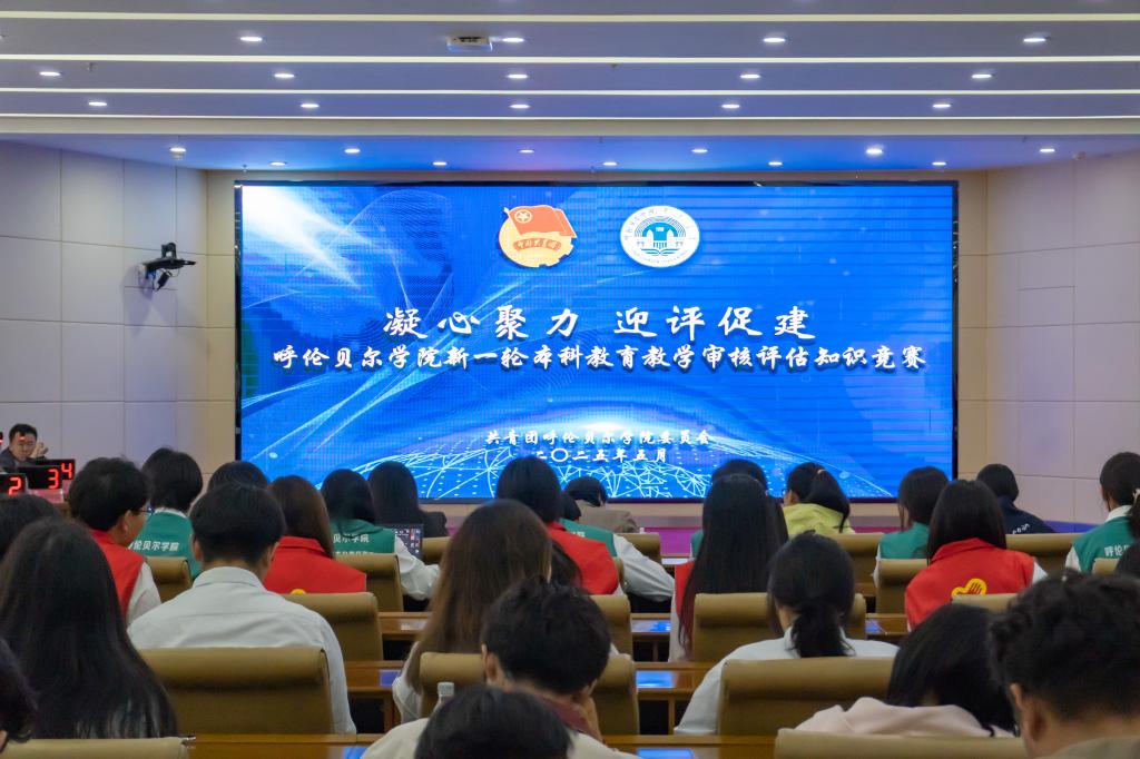 为扎实推进本科教育教学审核评估工作,帮助学生全面掌握新一轮审核评估的基本知识和深刻内涵,营造“人人了解评估、人人参与评估”的浓厚氛围,凝聚力量推动学校评估工作,5月30日下午,“凝心聚力迎评促建”呼伦贝尔学院新一轮本科教育教学审核评估知识竞赛在崇文楼A201会议室举办,来自各学院的16支参赛队伍参赛。教务处评建办、党委宣传部、团委、招生就业处等相关部门教师担任本次竞赛的仲裁评委,校青马班、学生会、青年志愿者协会以及各学院学生代表共100余人现场观看了比赛。