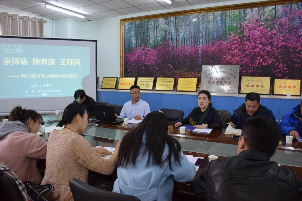 4月3日下午,在科技楼128,学生处党支部组织政治学习会,学生处全体职工参加学习。 本次政治学习分两部分内容进行。第一项内容,邀请校纪委刘建波老师就强化高校教师师德师风建设作专题讲座,刘建波老师以《崇师德 铸...
