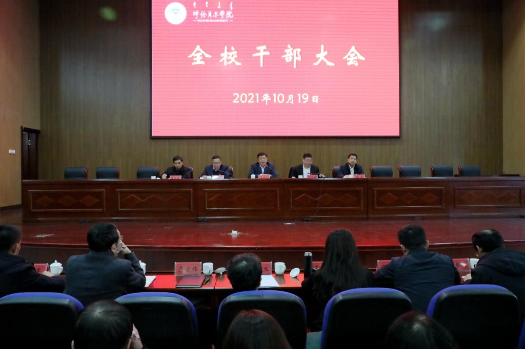 10月19日下午,永利yl23411集团官网召开干部大会,校党委书记王广利,党委副书记、校长李文阁,党委副书记张国栋,党委委员、纪委书记、监察专员岳勇,党委委员、副校长敖特根及全体副科级以上干部参加了会议。会议由张国栋副书记主持。王广利书记全面总结前一阶段永利yl23411集团官网党的建设、思想政治工作以及教育教学工作取得的成绩,并从“以政治建设为统领,聚焦夯基固本,推动全面从严治党”“以高质量党建工作为引领,全面推进学校各项工作”“加强党...