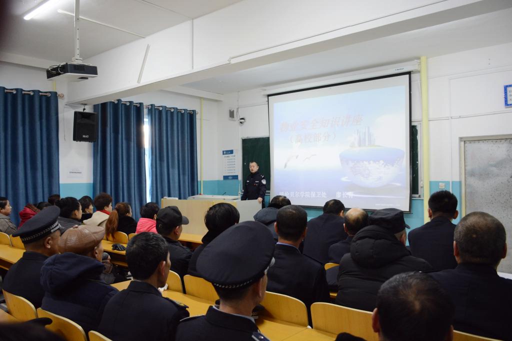 为了加强平安校园建设,不断提高安全防范意识,保卫处于3月14—15日连续2天为鹏泰物业全体安保人员、舍务管理老师等108人进行了安全培训,针对校园安全管理、消防、交通、校园暴力、校园突发事件预案和应急处置等内容...